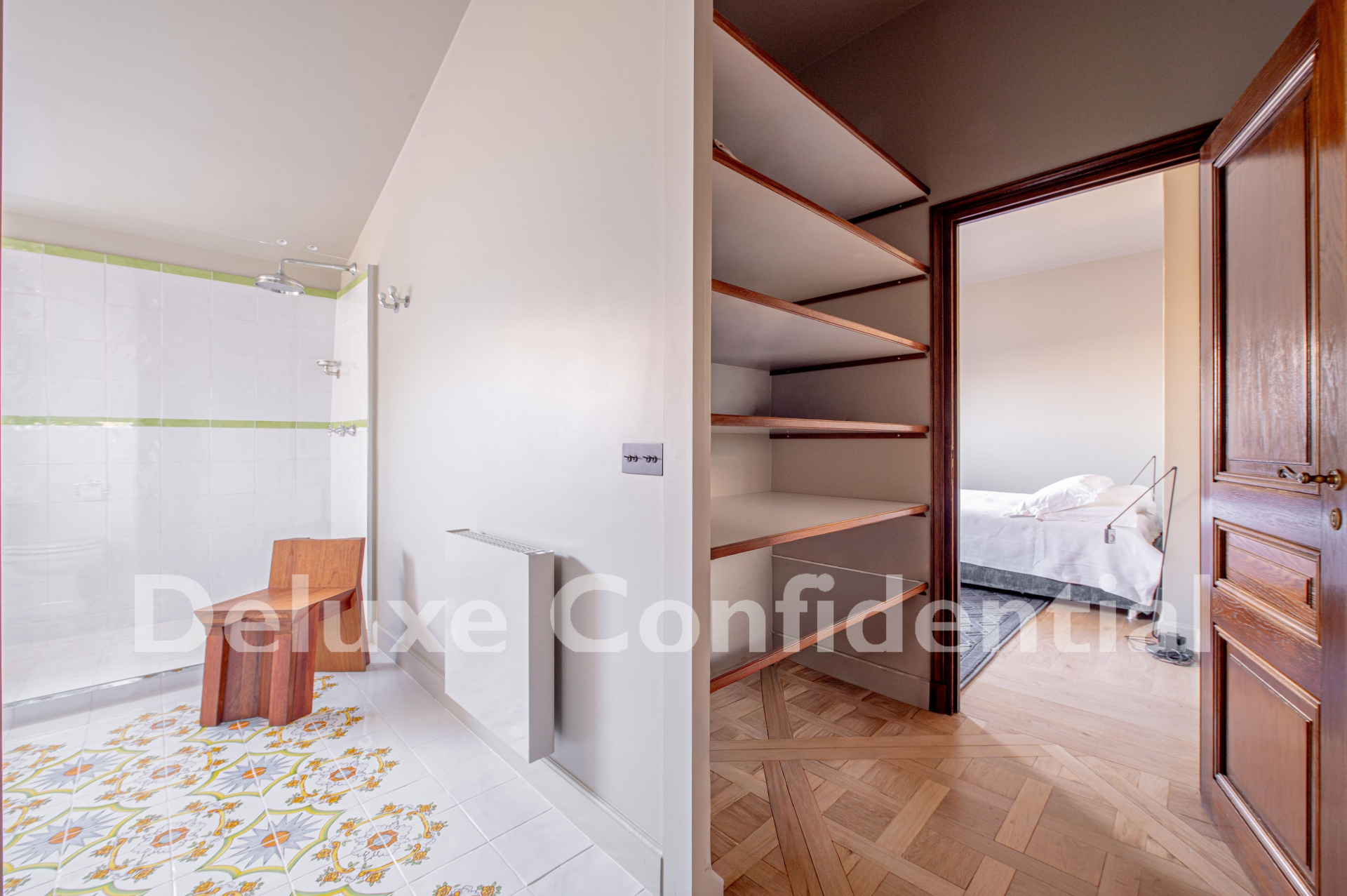 A beautiful, quiet bedroom overlooking the courtyard with shower room and adjoining dressing rooms